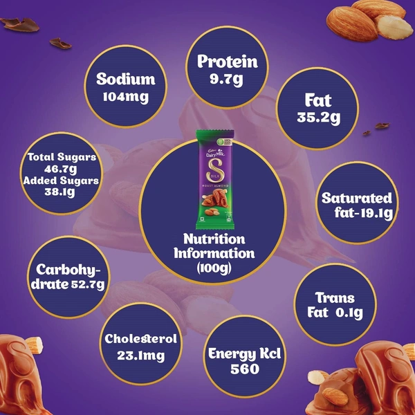 • Every bar of Cadbury Dairy Milk Silk is made from 100% sustainably cocoa. It is suitable for vegetarians.